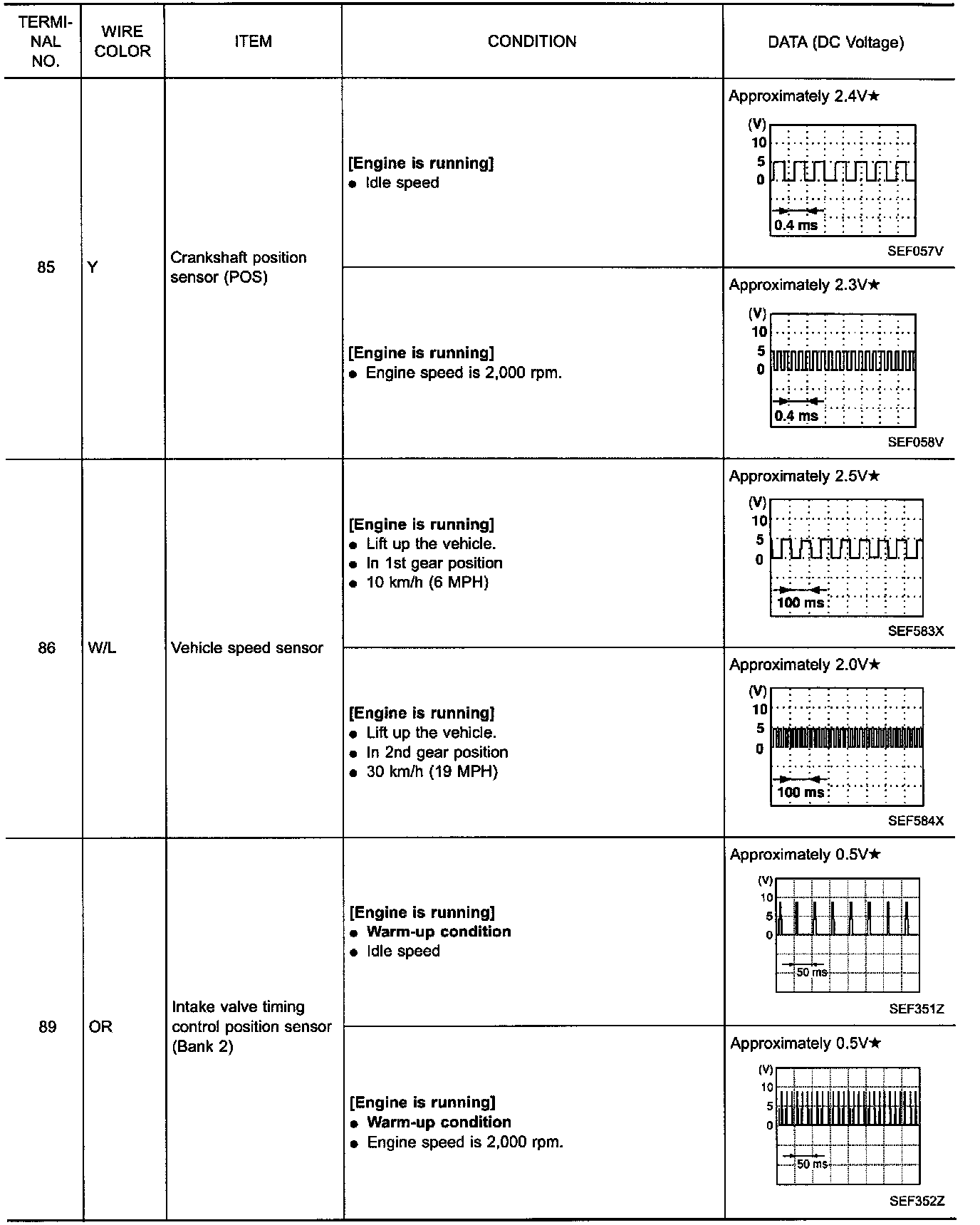Specification data are reference values and are measured between each terminal and ground.