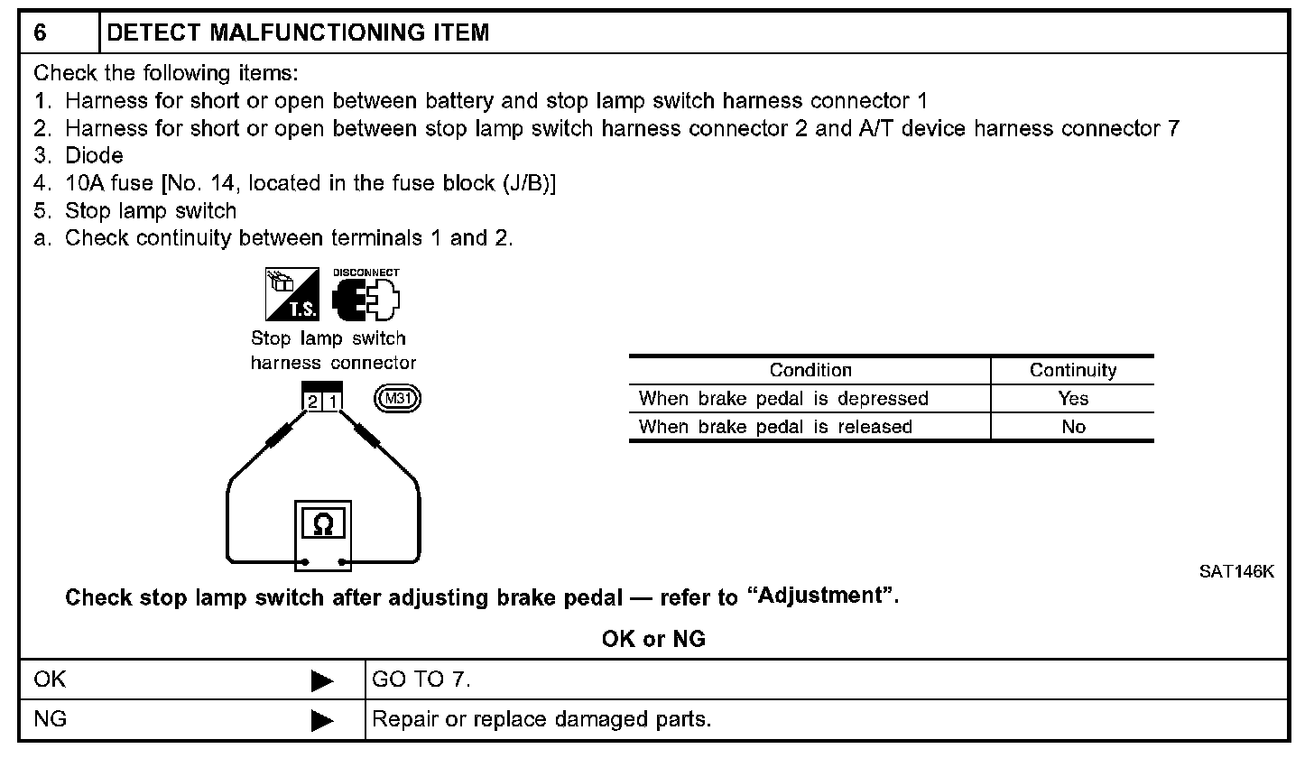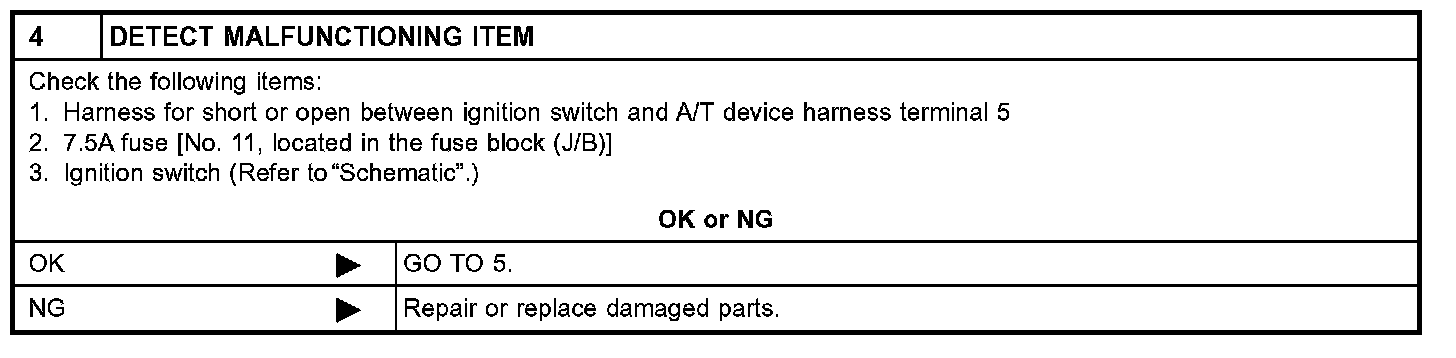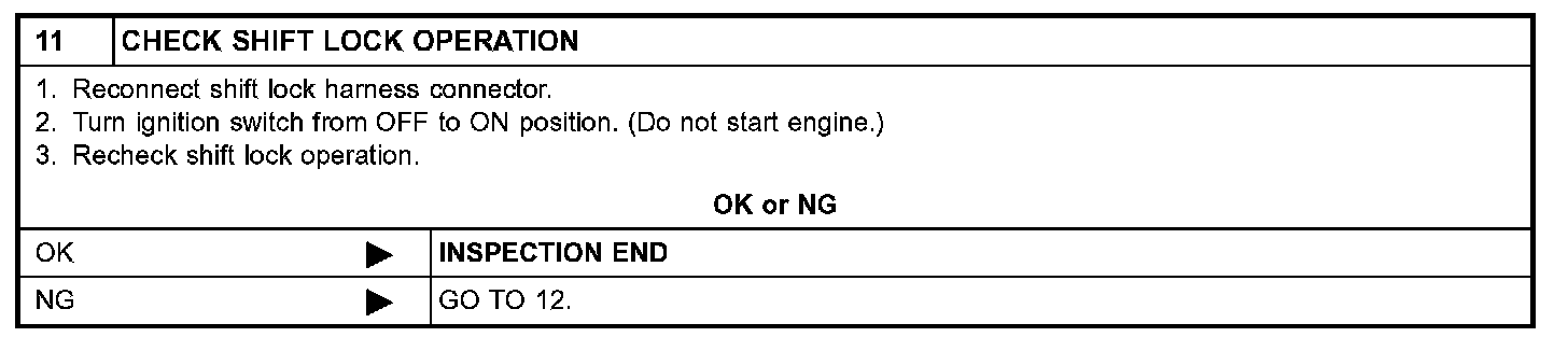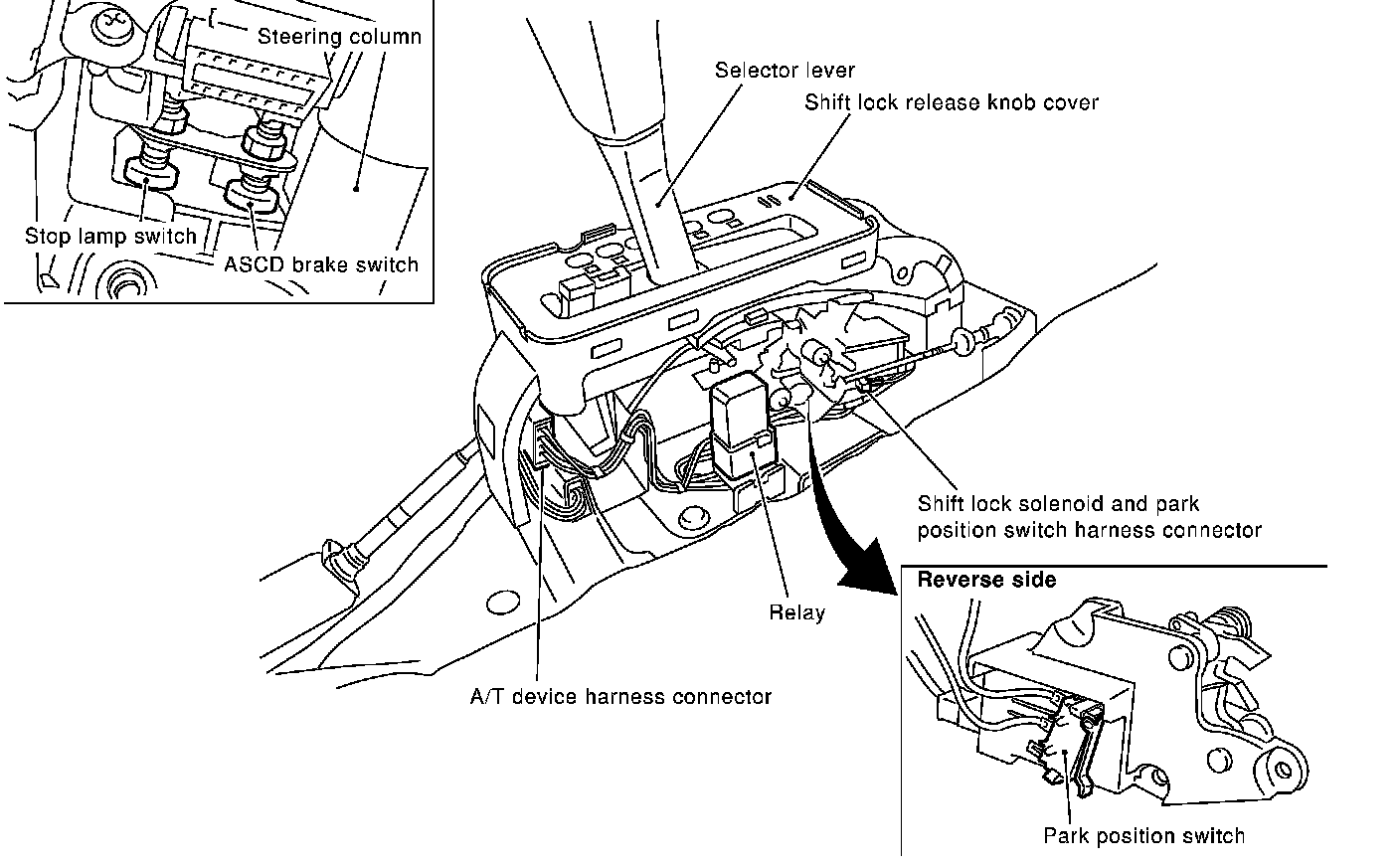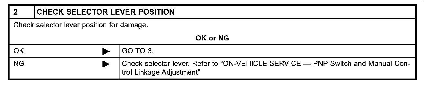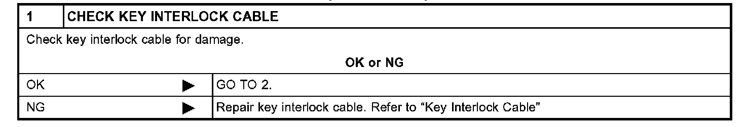 SYMPTOM 2: Ignition key cannot be removed when selector lever is set to "P" position. It can be removed when selector lever is set to any position except "P".