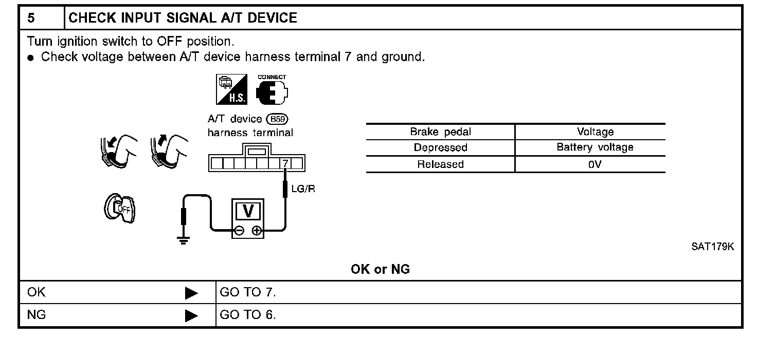 With the key switch turned to "ON", the selector lever cannot be shifted from "P" (parking) to any other position unless the brake pedal is depressed.