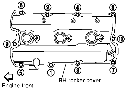 Tighten bolts 1 to 10 in that order to 6.9 to 8.8 Nm (0.7 to 0.9 kg-m, 61 to 78 inch lbs.).