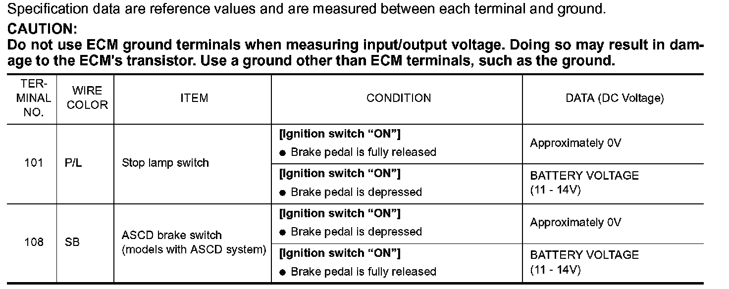 Control Module Pinout Values
