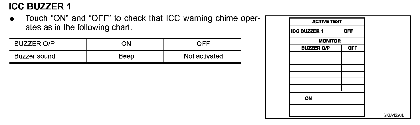 - Active test cannot be started while ICC system warning indicator illuminates.