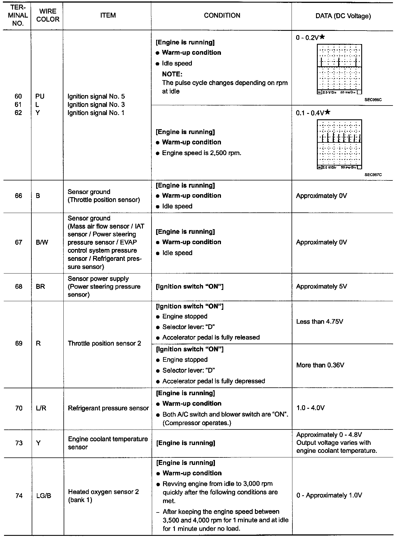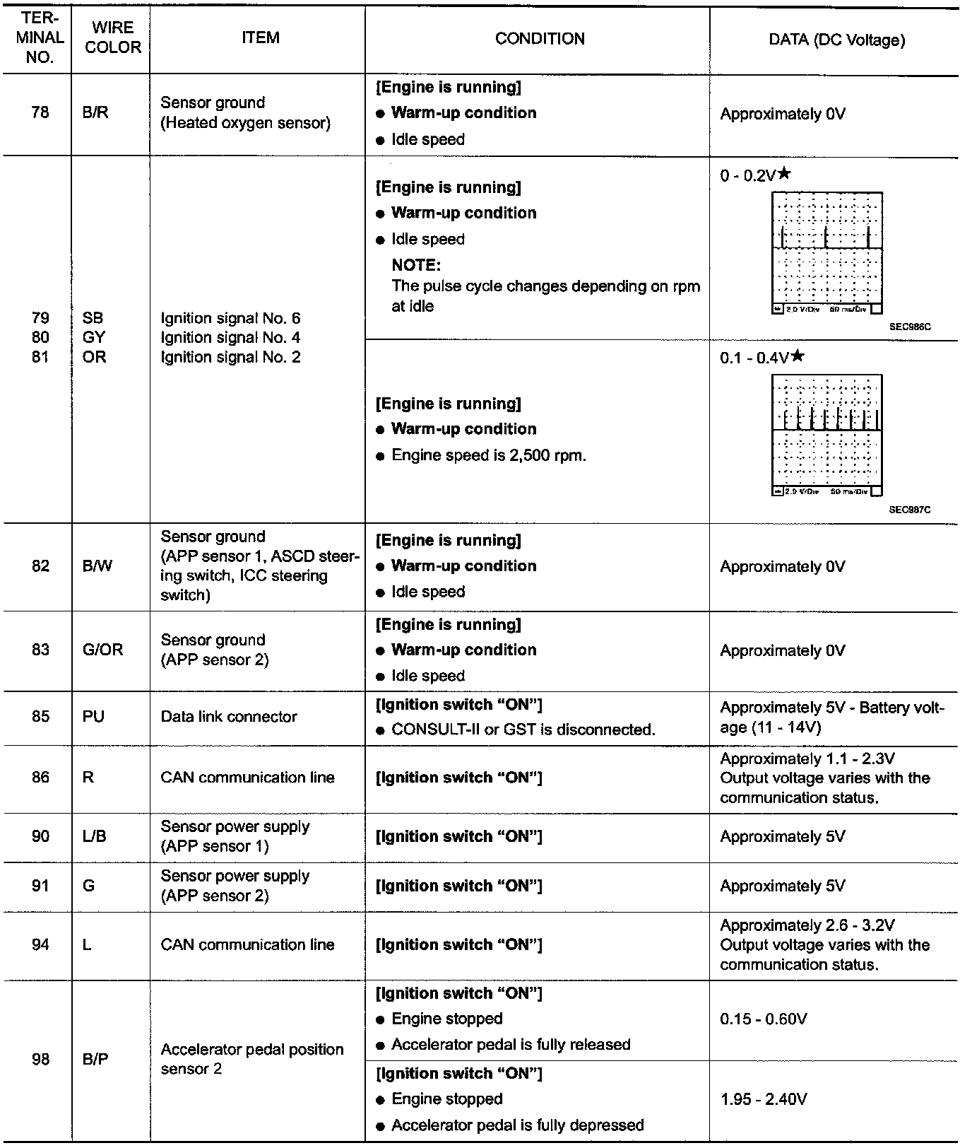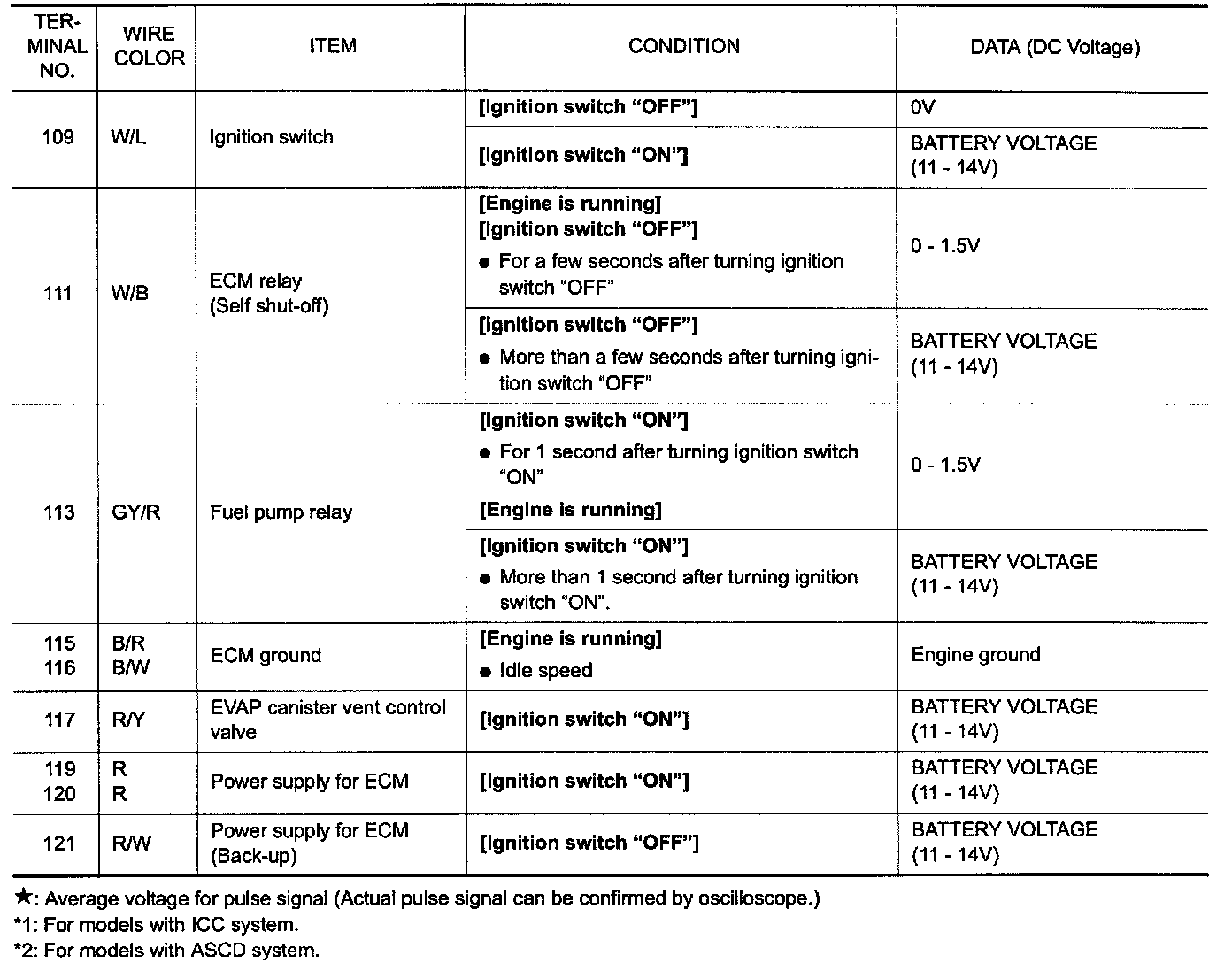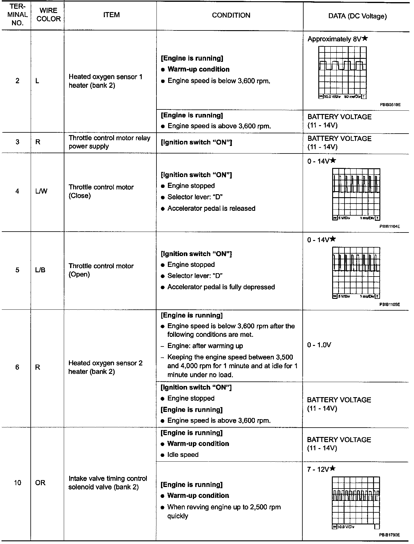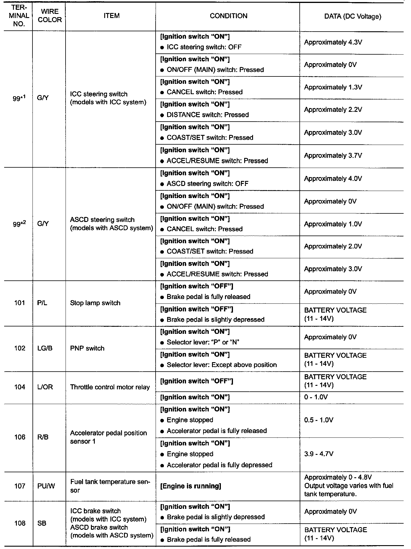 Do not use ECM ground terminals when measuring input/output voltage. Doing so may result in damage to the ECM's transistor. Use a ground other than ECM terminals, such as the ground.
