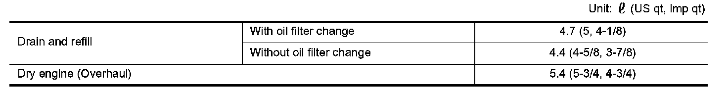 ^ The refill capacity depends on the engine oil temperature and drain time. Use these specifications for reference only.