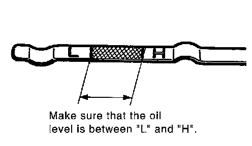 3. Insert oil level gauge and make sure the engine oil level is within the range shown in the figure.