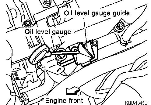 NOTE: When checking engine oil level, insert oil level gauge with its tip aligned with oil level gauge guide on cylinder head. (In figure, air cleaner case and air duct are removed.)
