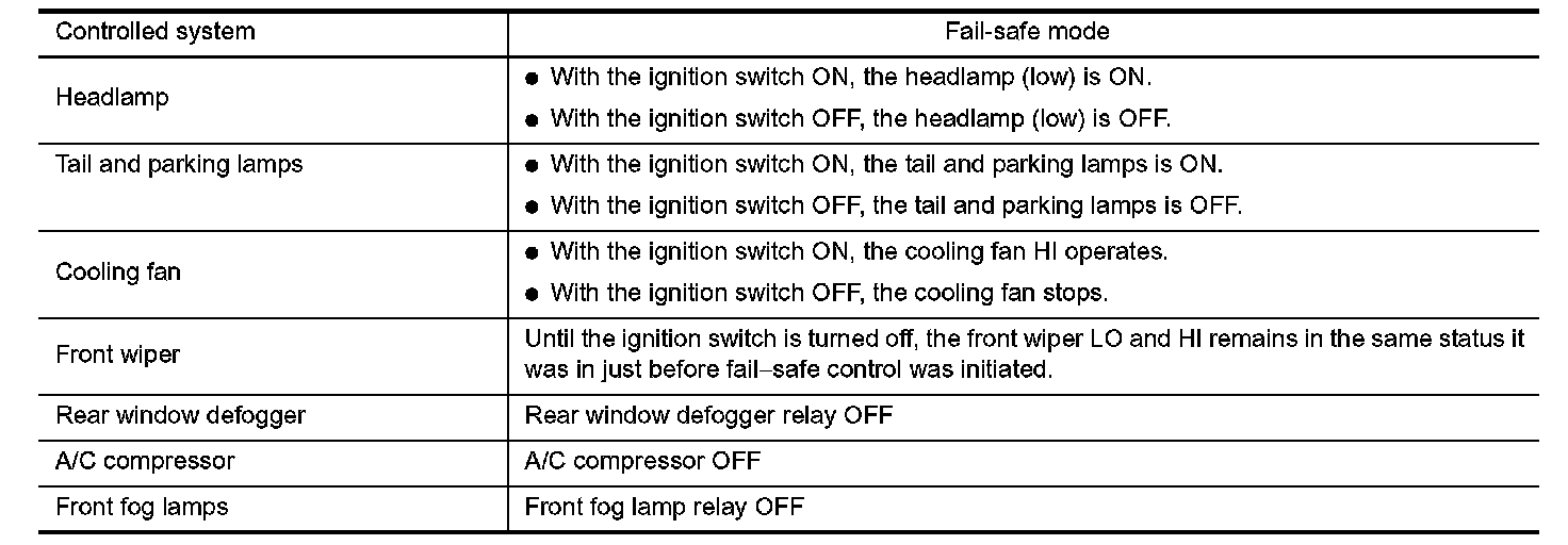 - Operation of control parts by IPDM E/R during fail-safe mode is as: