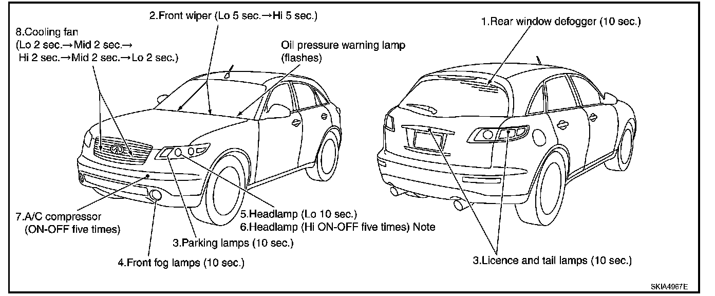 - In auto active test mode operation inspection can be performed when IPDM E/R sends a drive signal to the following systems:
