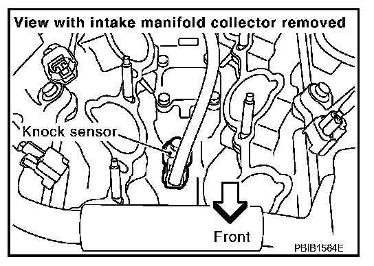 The knock sensor is attached to the cylinder block. It senses engine knocking using a piezoelectric element. A knocking vibration from the cylinder block is sensed as vibrational pressure. This pressure is converted into a voltage signal and sent to the ECM.