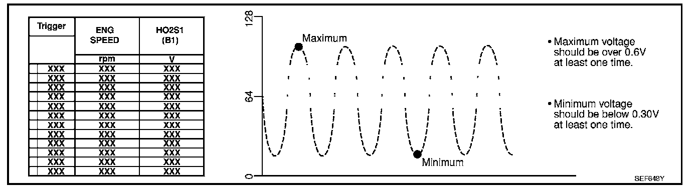 (Depress and release accelerator pedal as soon as possible.) The voltage should be above 0.63V at least once during this procedure.
