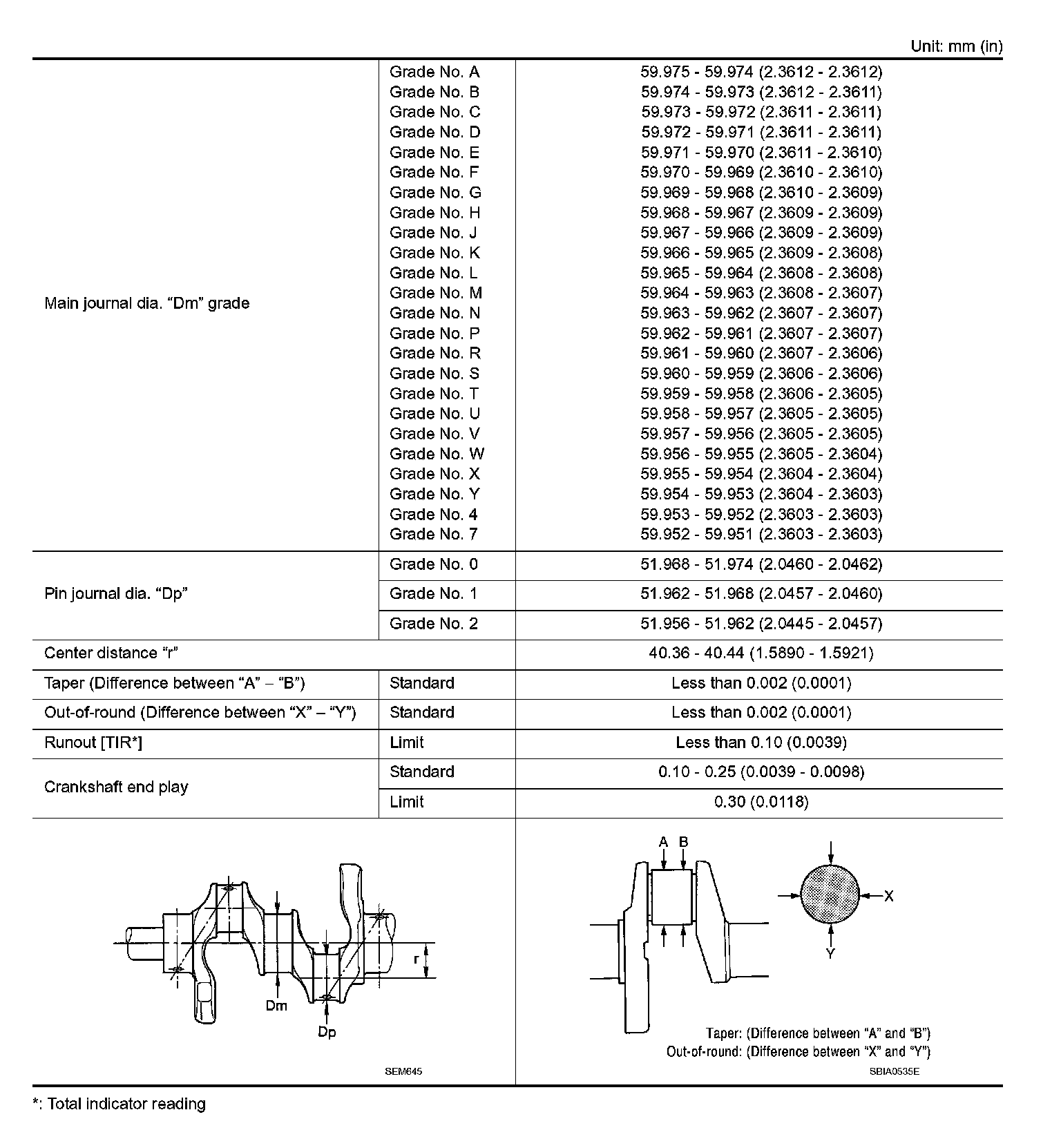 AVAILABLE MAIN BEARING