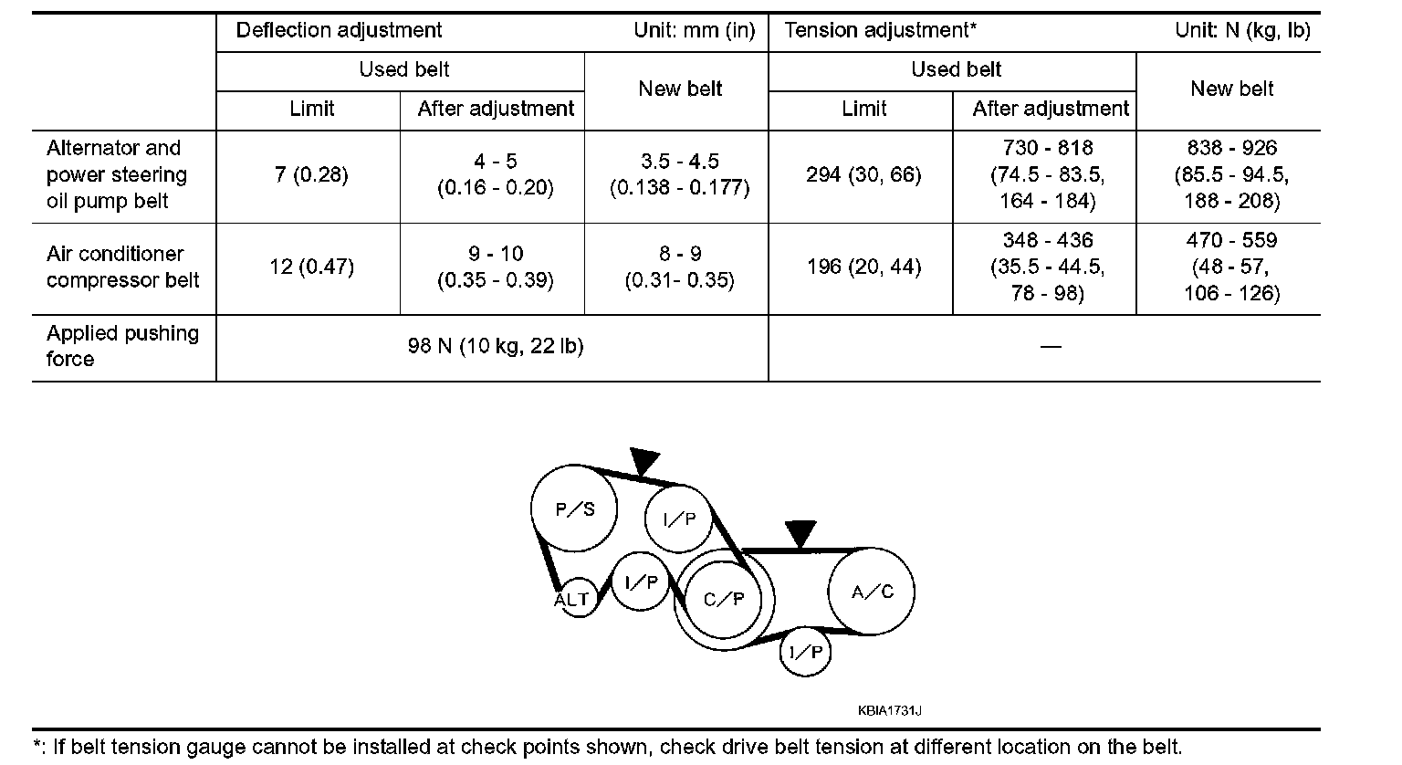 Water Pump Bolts 9.6 Nm (1.0 kg-m, 87 inch lbs.)