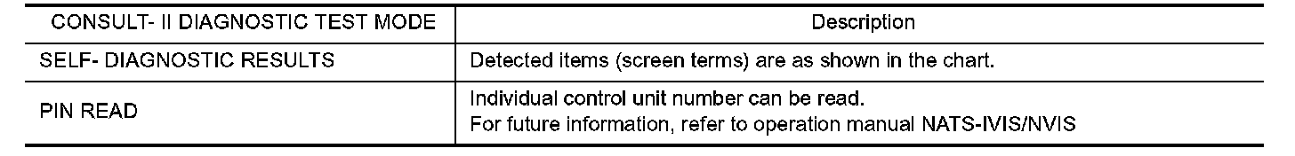 CONSULT-II DIAGNOSTIC TEST MODE FUNCTION
