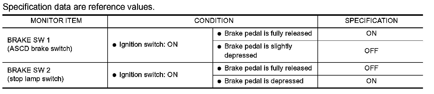 CONSULT-II Reference Value in Data Monitor Mode