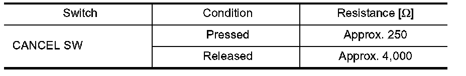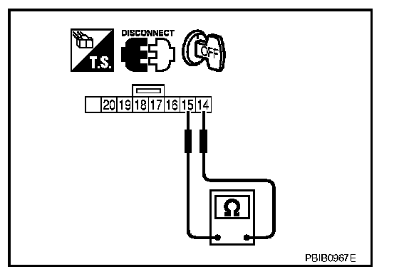 Check continuity between ASCD steering switch terminals 14 and 15 with pushing each switch.