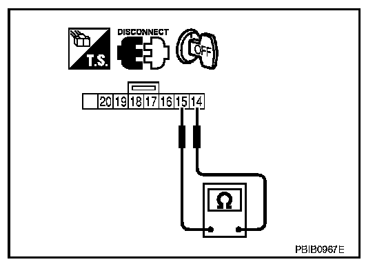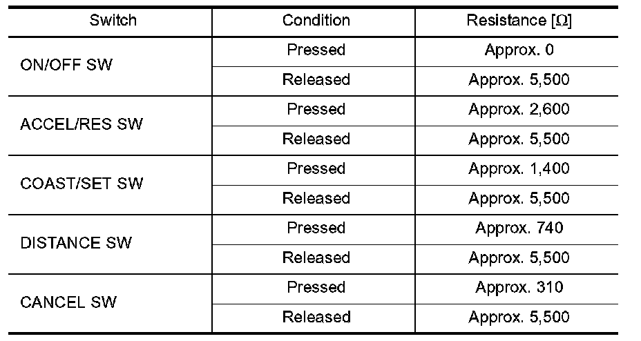 Check continuity between ICC steering switch terminals 14 and 15 with pushing each switch.