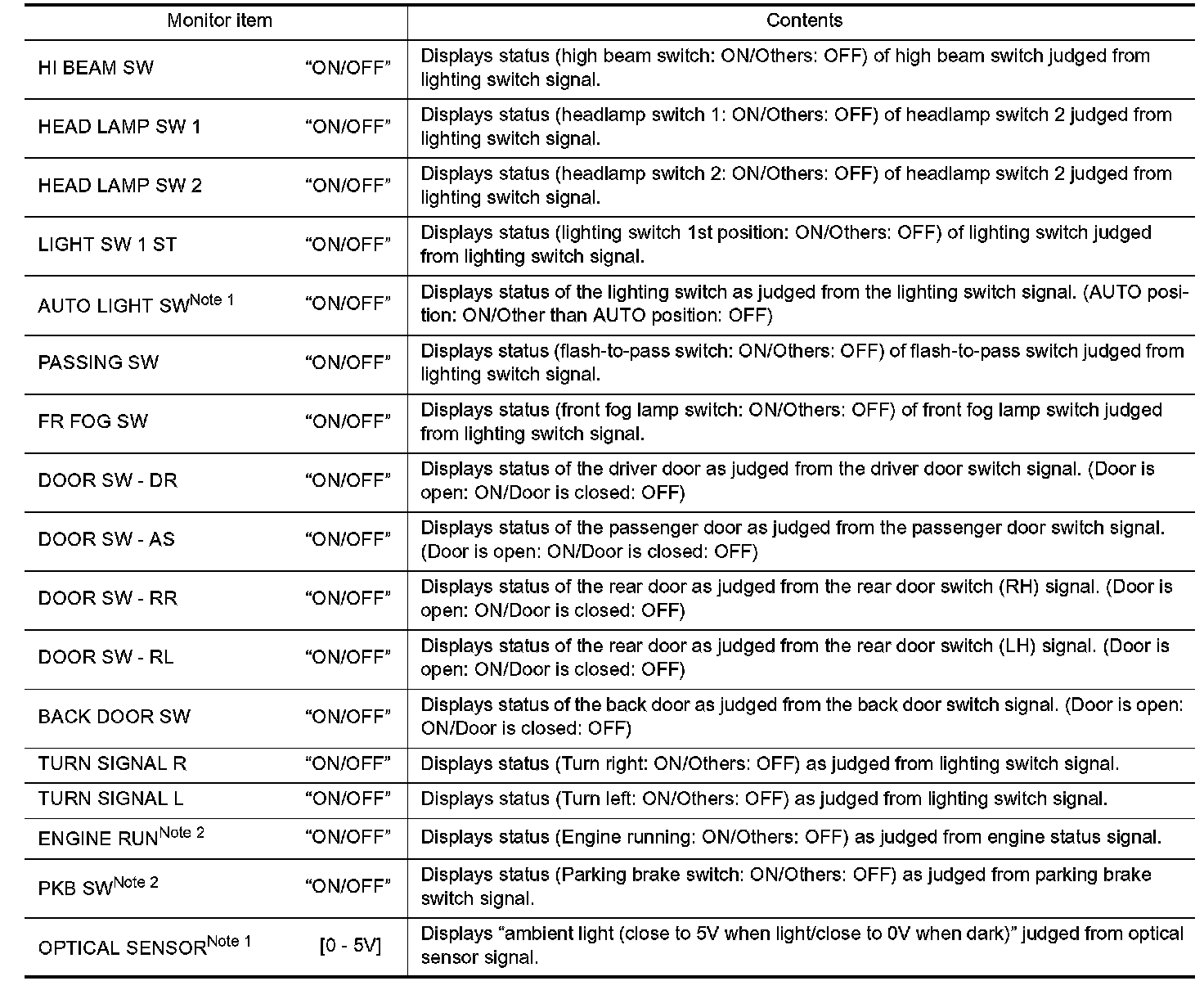 1. Vehicles without auto light system display this item, but cannot monitor it.