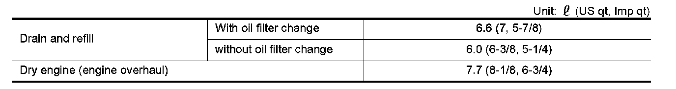^ The refill capacity depends on the engine oil temperature and drain time. Use these specifications for reference only.