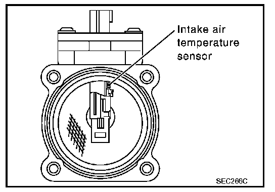 INTAKE AIR TEMPERATURE SENSOR1. Check resistance between mass air flow sensor terminals 5 and 6 under the specified conditions.