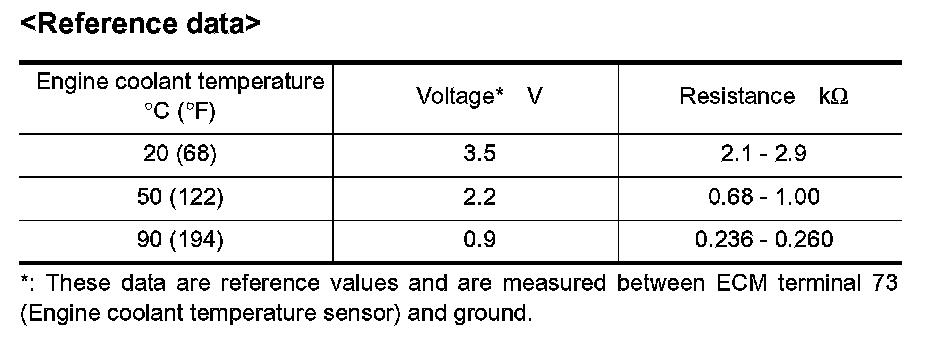 The engine coolant temperature sensor is used to detect the engine coolant temperature. The sensor modifies a voltage signal from the ECM. The modified signal returns to the ECM as the engine coolant temperature input. The sensor uses a thermistor which is sensitive to the change in temperature. The electrical resistance of the thermistor decreases as temperature increases.