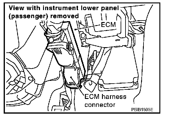 1. ECM is located behind the passenger side instrument lower panel. For this inspection, remove passenger side instrument lower panel.