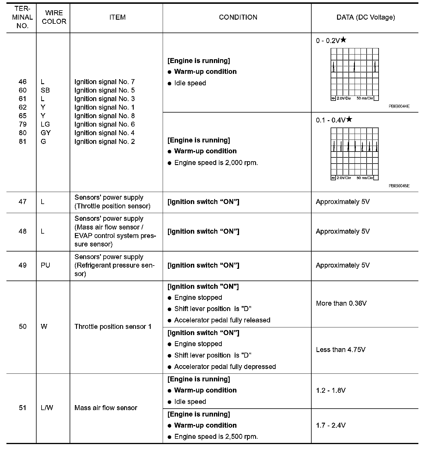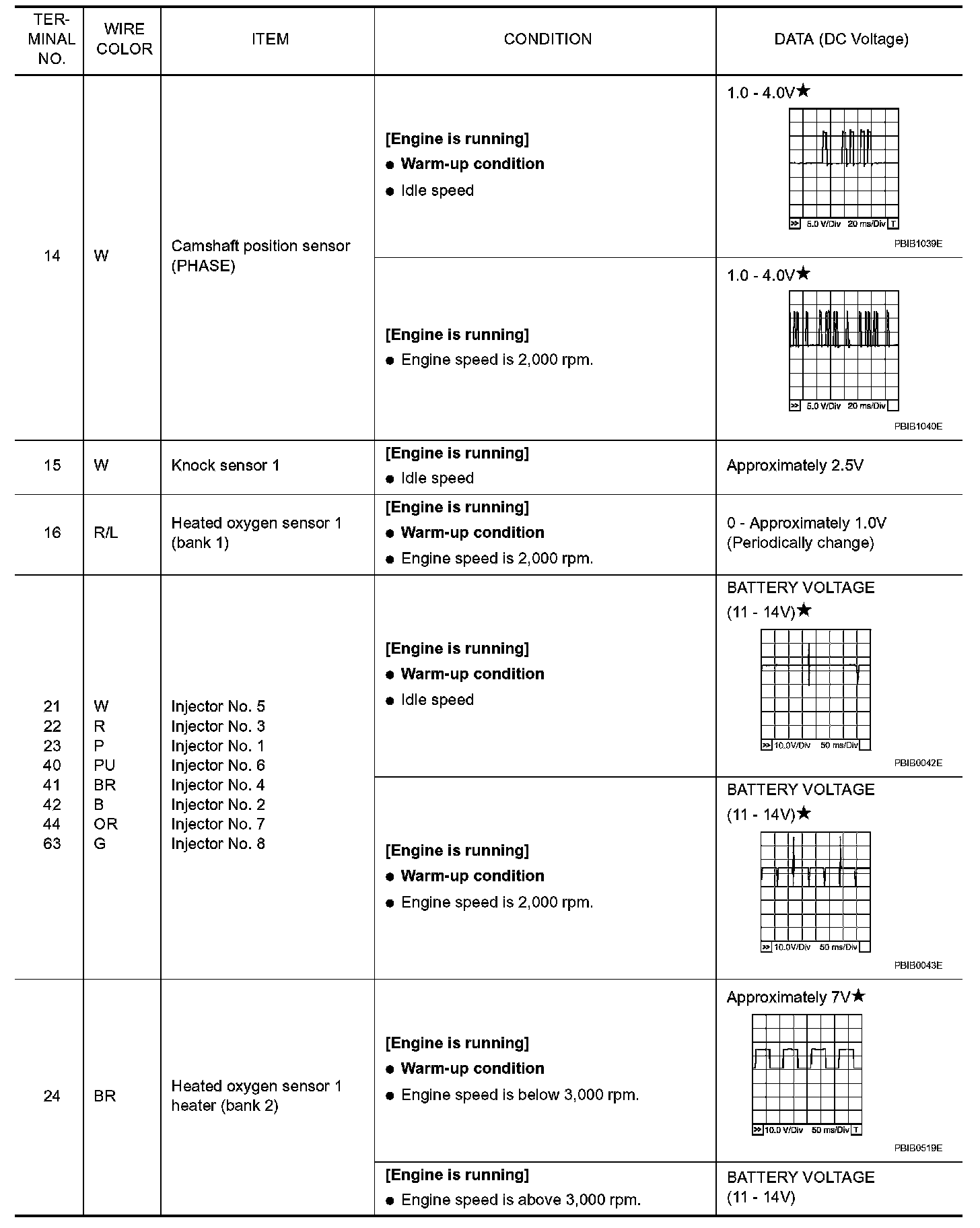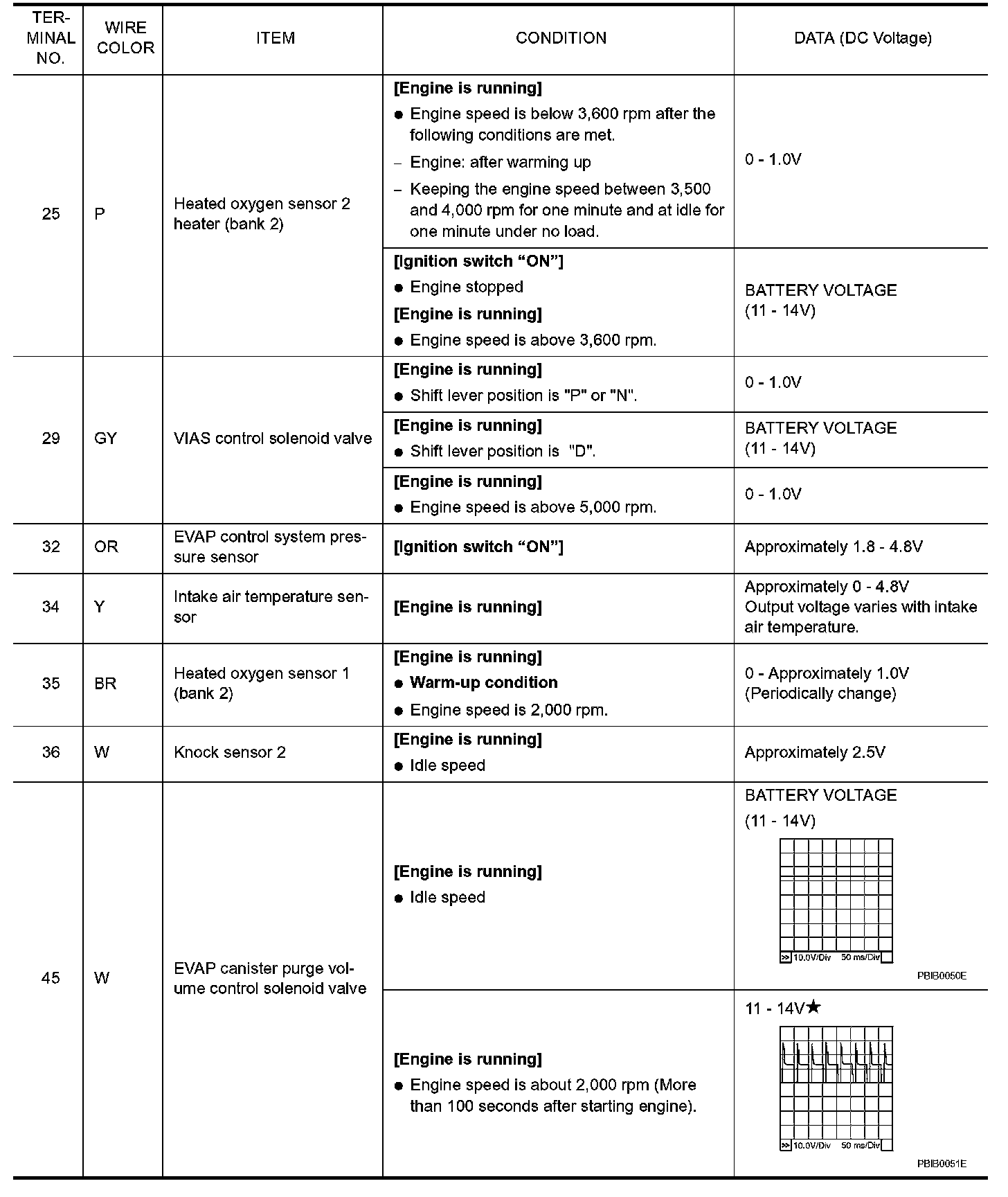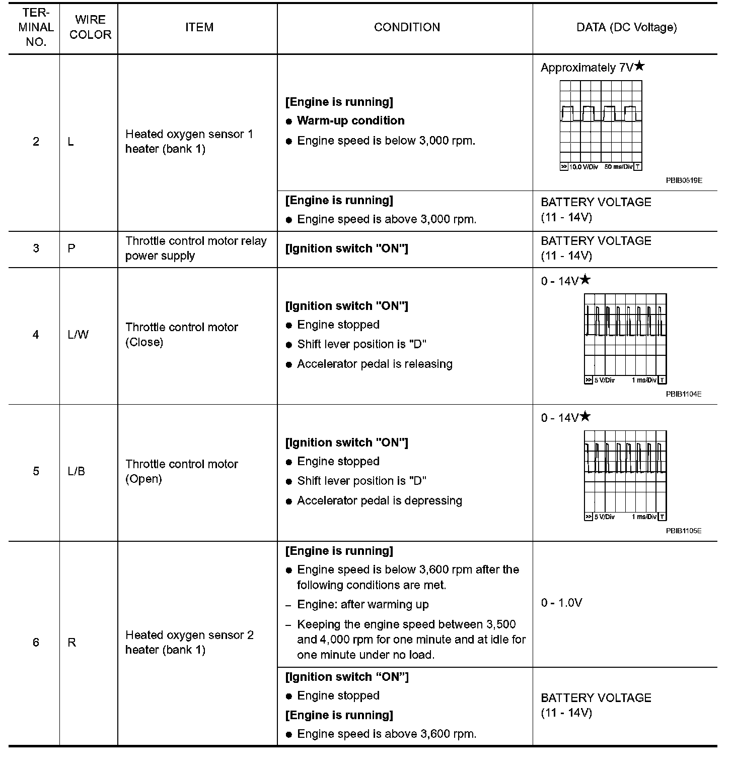 CAUTION: Do not use ECM ground terminals when measuring input/output voltage. Doing so may result in damage to the ECMs transistor. Use a ground other than ECM terminals, such as the ground.