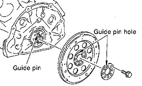 Align guide pin of crankshaft rear end with pin holes of each parts to install.