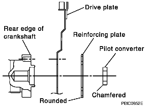 Install drive plate, reinforcement plate and pilot converter as shown in figure.