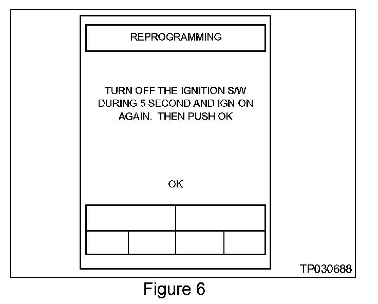 10. Turn the ignition switch OFF and then back ON within 5 seconds. Then press "OK" (see Figure 6) to start Air Bag ECU reprogramming. It takes about 10 seconds to complete the reprogramming.