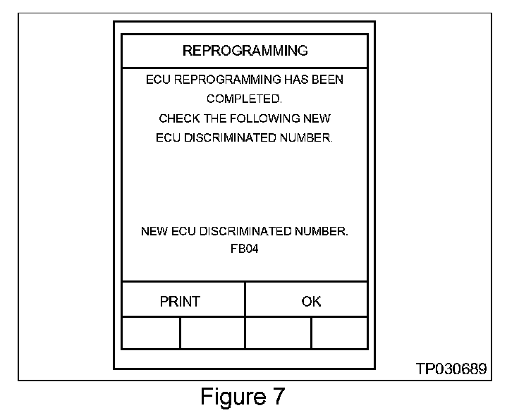 ^ If the reprogramming is successful print out the CONSULT-II screen (see Figure 7) and attach it to the Repair Order then press "END".