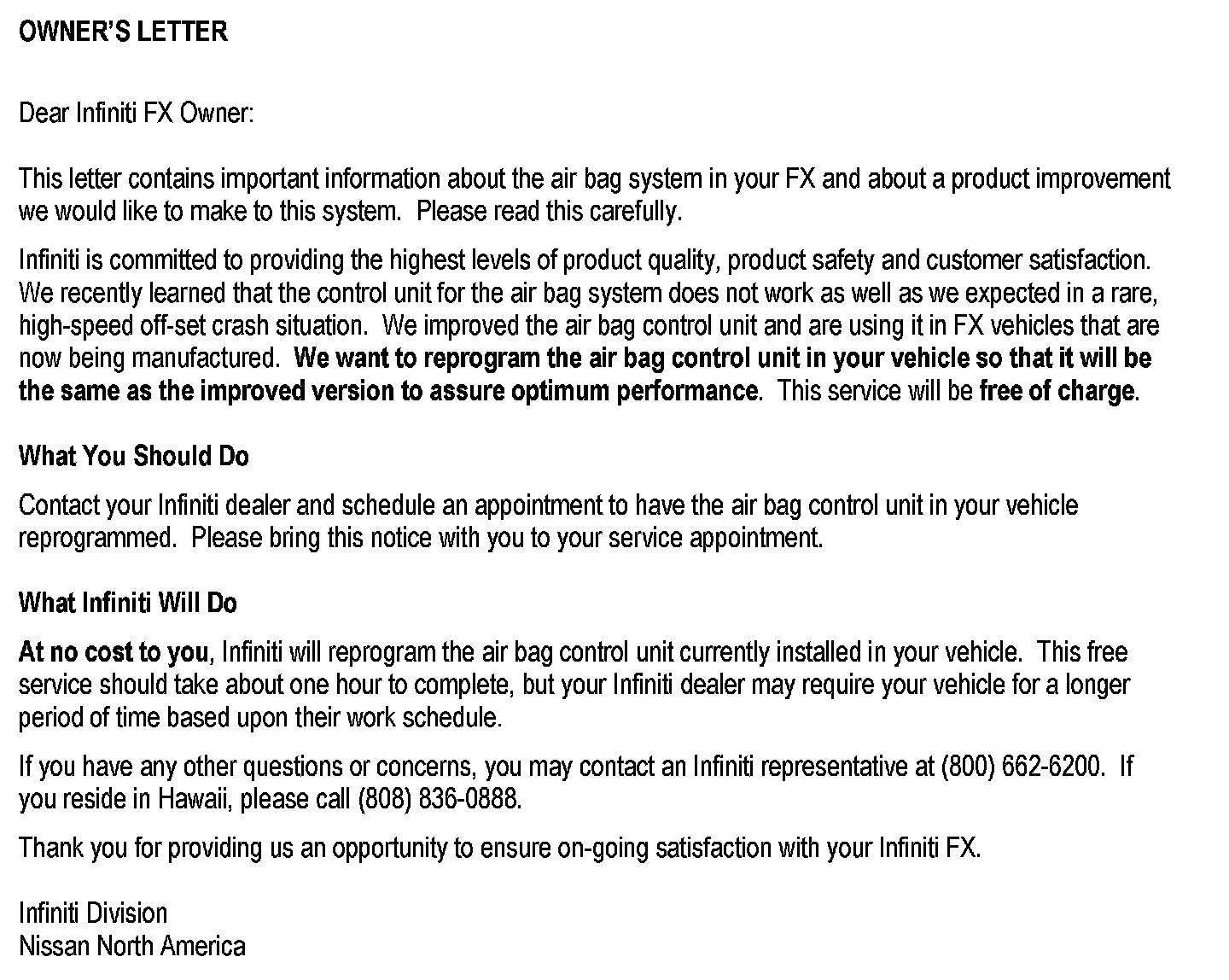 Owner Letter
