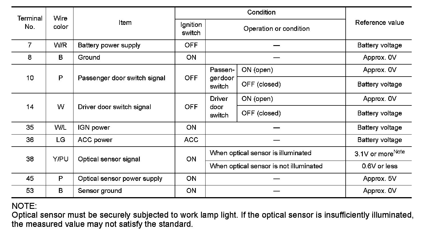 Terminals And Reference Value For BCM: