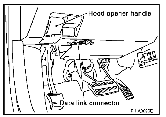 2. Connect "GST" to data link connector which is located under LH dash panel near the hood opener handle.