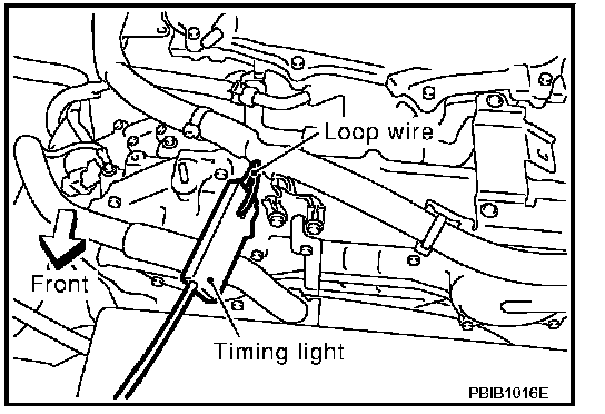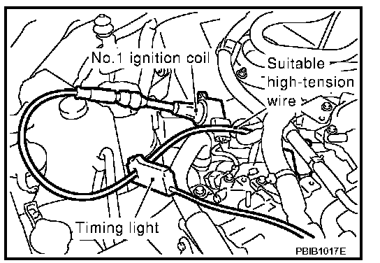 2. Connect No.1 ignition coil and No.1 spark plug with suitable high-tension wire as shown, and attach timing light clamp to this wire.
