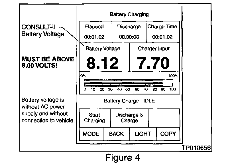 26. After about one minute has passed, check the CONSULT-II's battery voltage reading on the CONSULT-II screen (see Figure 4).