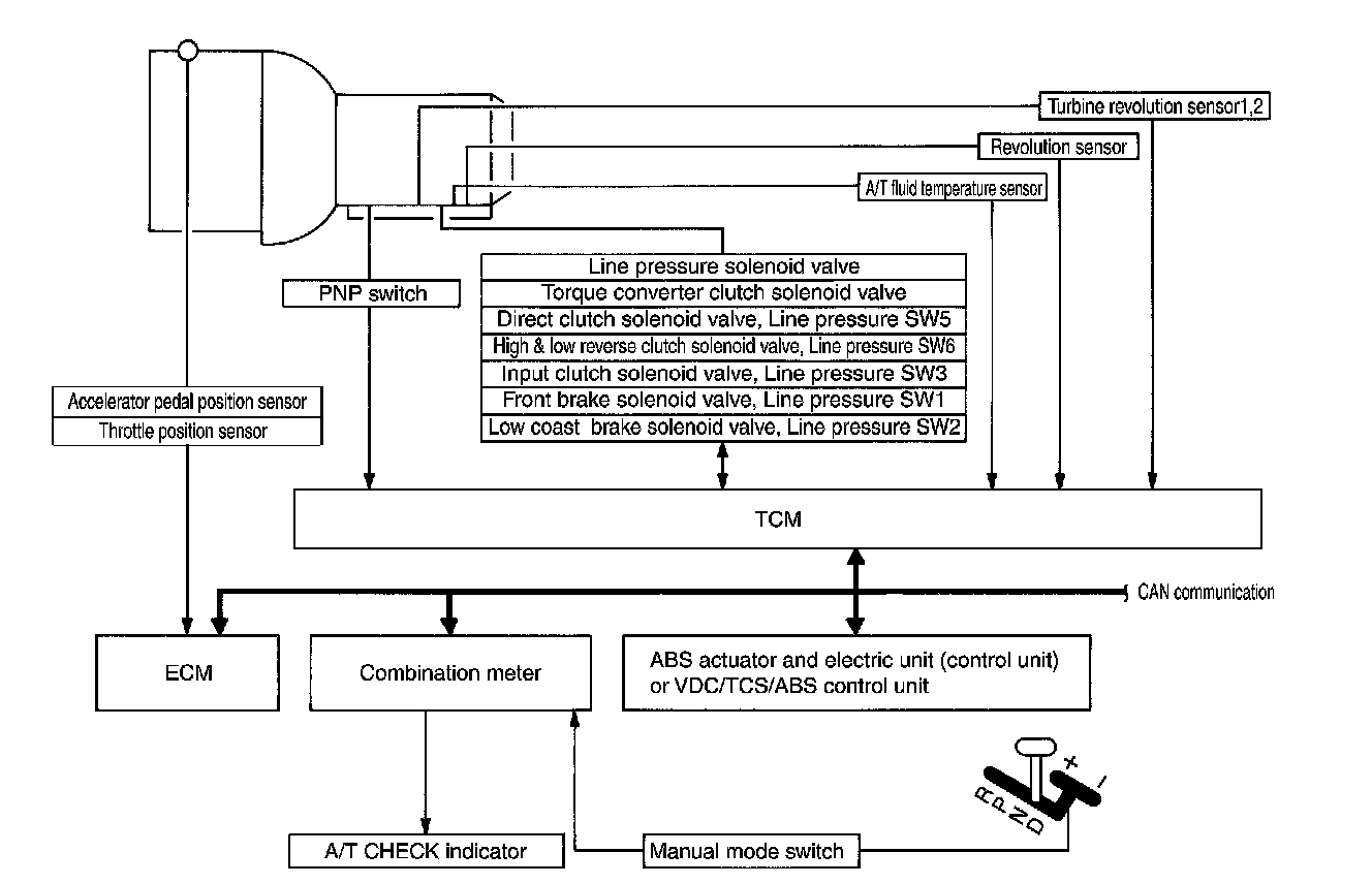 ^ Determine required line pressure, shifting point, lock-up operation, and engine brake operation.