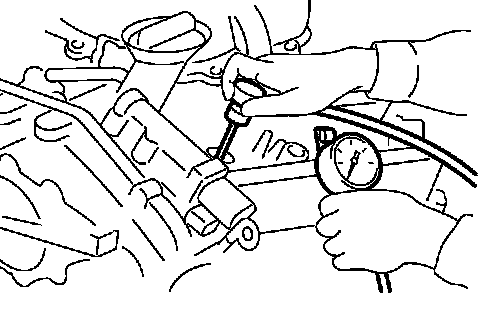 8. With accelerator pedal fully depressed, turn ignition switch to "START" for cranking. When the gauge pointer stabilizes, read the compression pressure and engine rpm. Perform these steps to check each cylinder.