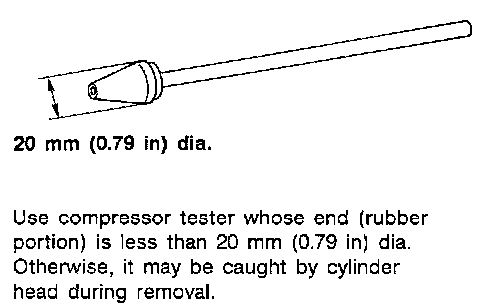 ^ Use compression gauge whose picking up end inserted to spark plug hole is smaller than 20 mm (0.79 inch) in diameter. Otherwise, it may be caught by cylinder head during removal.