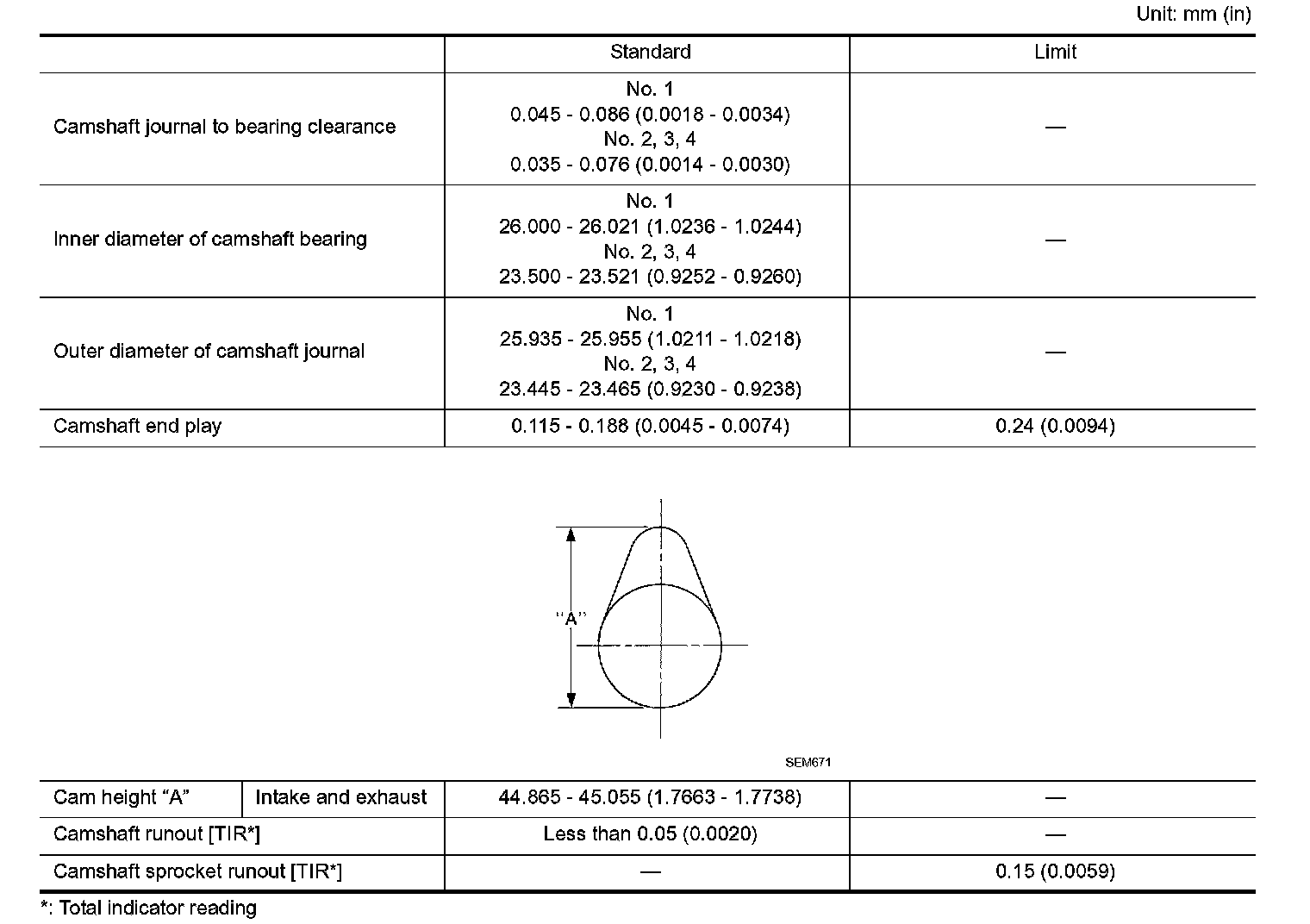 Oil pump body 6.4 - 7.5 Nm (0.65 - 0.76 kgf-cm, 57 - 66 inch lbs.)