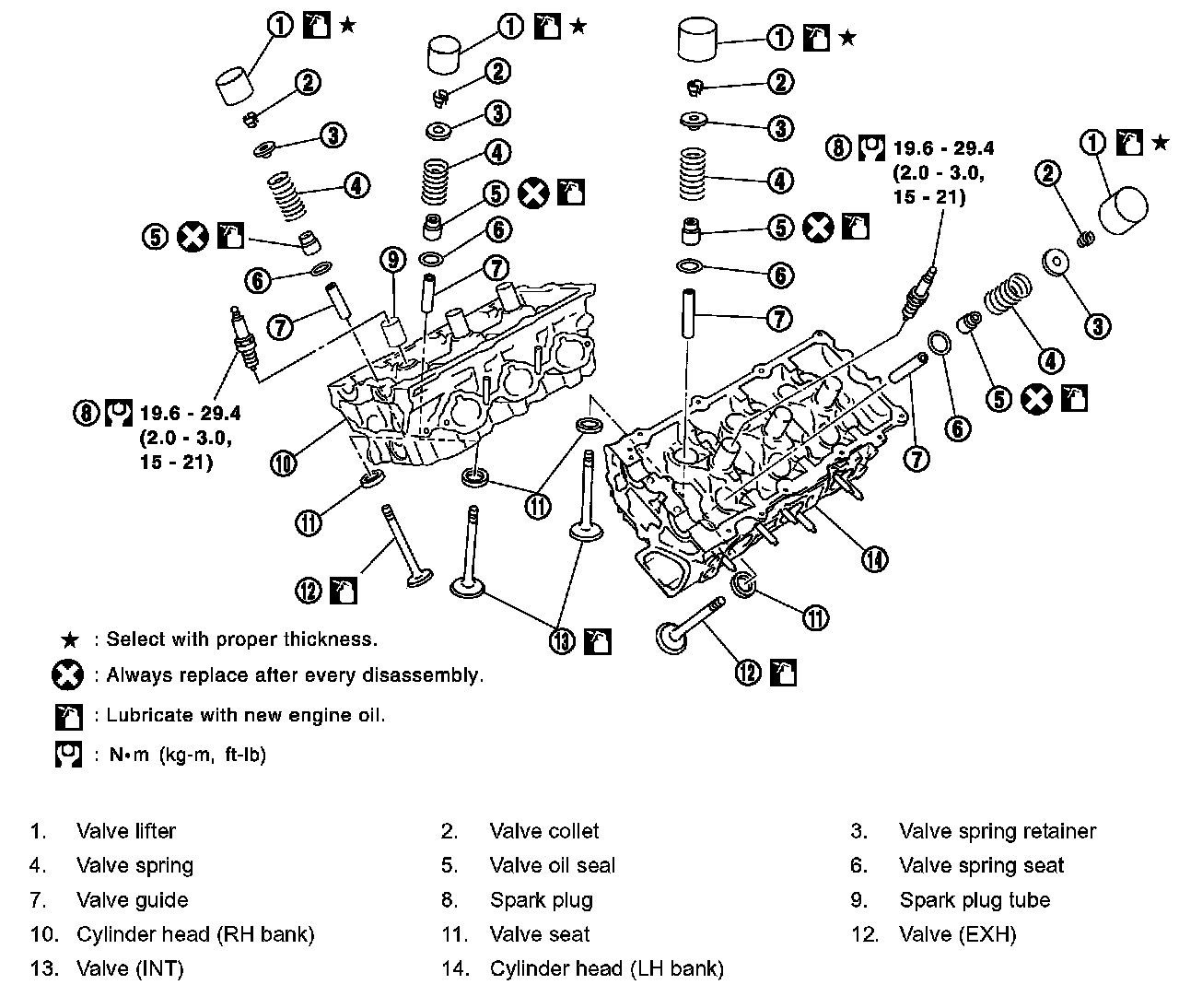 2) 26.5 - 31.4 Nm (2.7 - 3.2 kgf-cm, 20 - 23 ft. lbs.)