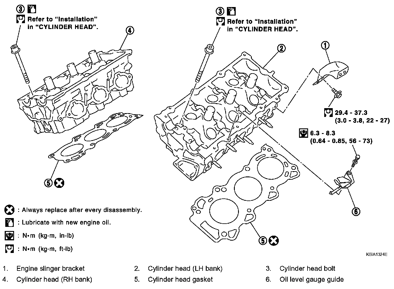 3) 34.3 - 44.1 Nm (3.5 - 4.5 kgf-cm, 26 - 32 ft. lbs.)