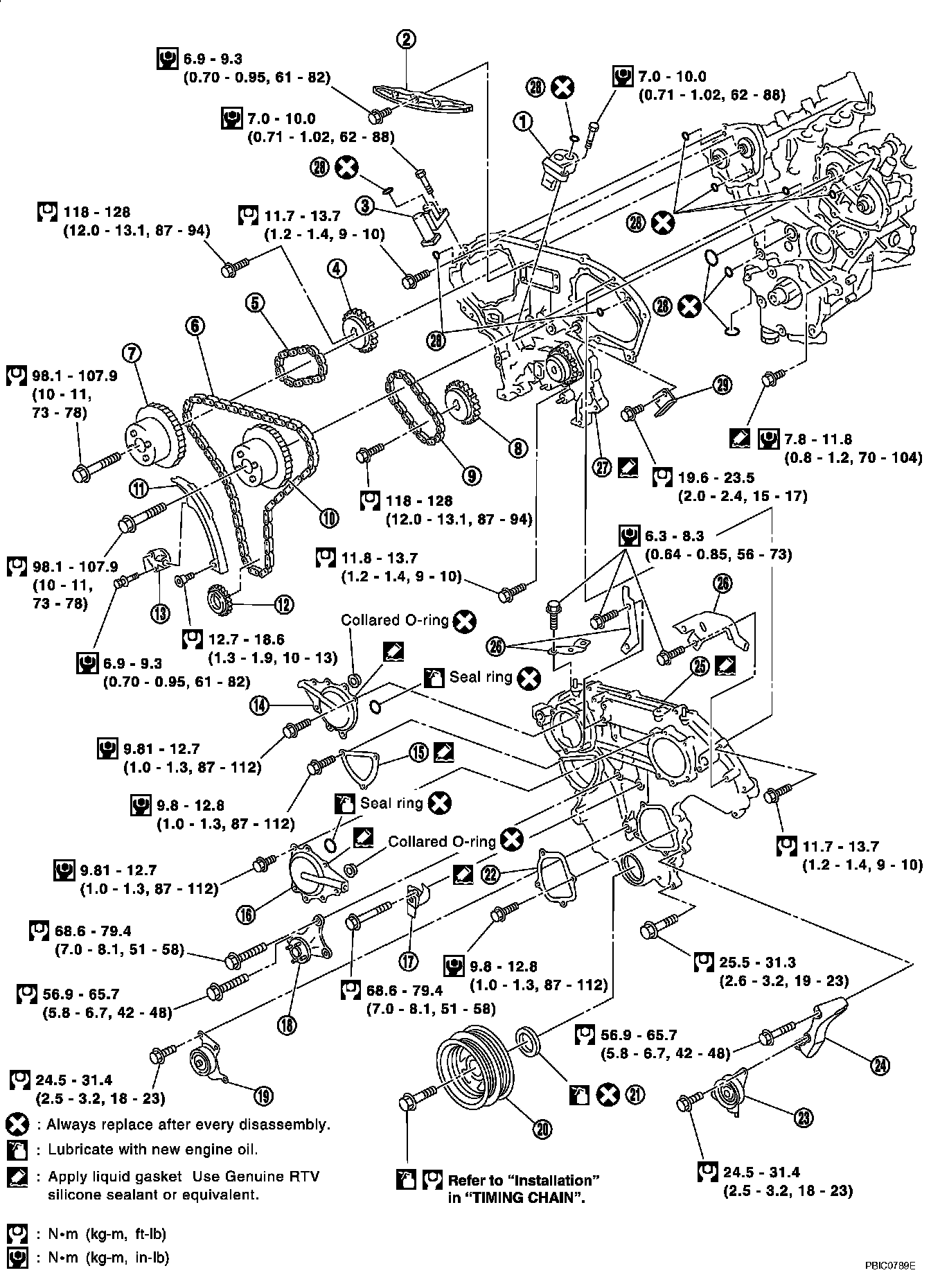 Timing chain slack guide 12.7 - 18.6 Nm (1.3 - 1.9 kgf-cm, 10 - 13 ft. lbs.)