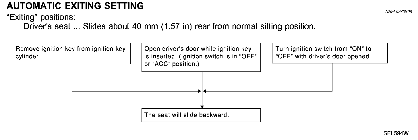 NOTE: When memory switch for which driver's seat positions are already retained in memory is pressed, new seat positions will be retained in memory in place of the previously set positions.