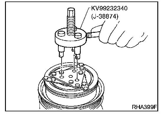 - When removing center bolt, hold clutch disc with clutch disc wrench.