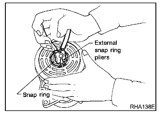 - Remove the snap ring using external snap ring pliers.