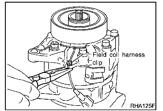 - Remove the field coil harness clip using a pair of pliers.