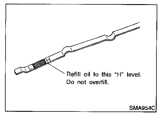 ^ Never pull out level gauge while filling engine oil.