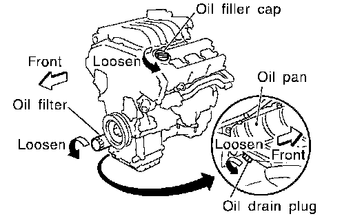 3. Remove drain plug and oil filler cap.