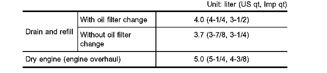 ^ The refill capacity depends on the oil temperature and drain time. Use these specifications for reference only. Always use the dipstick to determine when the proper amount of oil is in the engine.