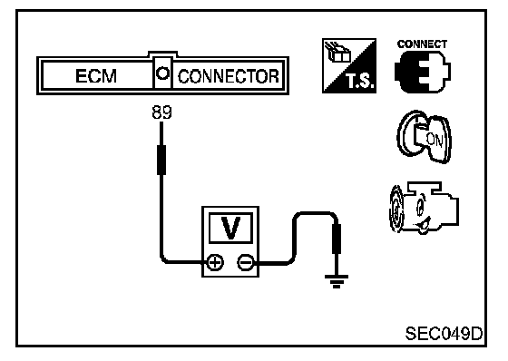 3. Check voltage between ECM terminal 89 and ground under the following conditions.
